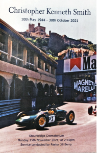 It was a lovely service, and interesting to hear about Chris’s life and tales such as him taking pole position in Monte Carlo!
