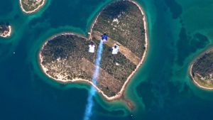 Well that is exactly what three skydivers did on Valentine’s Day this year. The island is question, whose real name is Galesnjak, is known as the “Island of Love” because it really is heart shaped. It is located off the coast of Croatia and is beautiful. It is uninhabited and the only way that you can get to it is by boat – either by renting one or getting on a boat that makes a stop their. The owner of the island receives many requests from couples who would love to get married on the island.